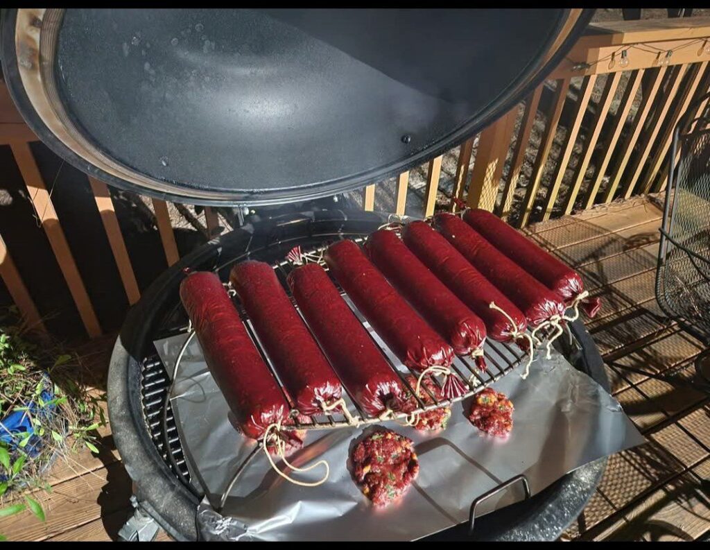 My wife and I enjoy Charcuterie boards with summer sausage, smoked cheese, and crackers. We serve this as appetizers for parties, when our favorite college team is playing on tv, or an easy, light meal. I thought, why not try my hand at making my own summer sausage from the antelope meat? I went with the smoky, peppery, cheesy flavor of jalapeño cheddar summer sausage. We also decided to try our hand at smoking our own cheese. We prepare the summer sausage and smoked cheese on our Weber Kamado smoker at home on our deck.