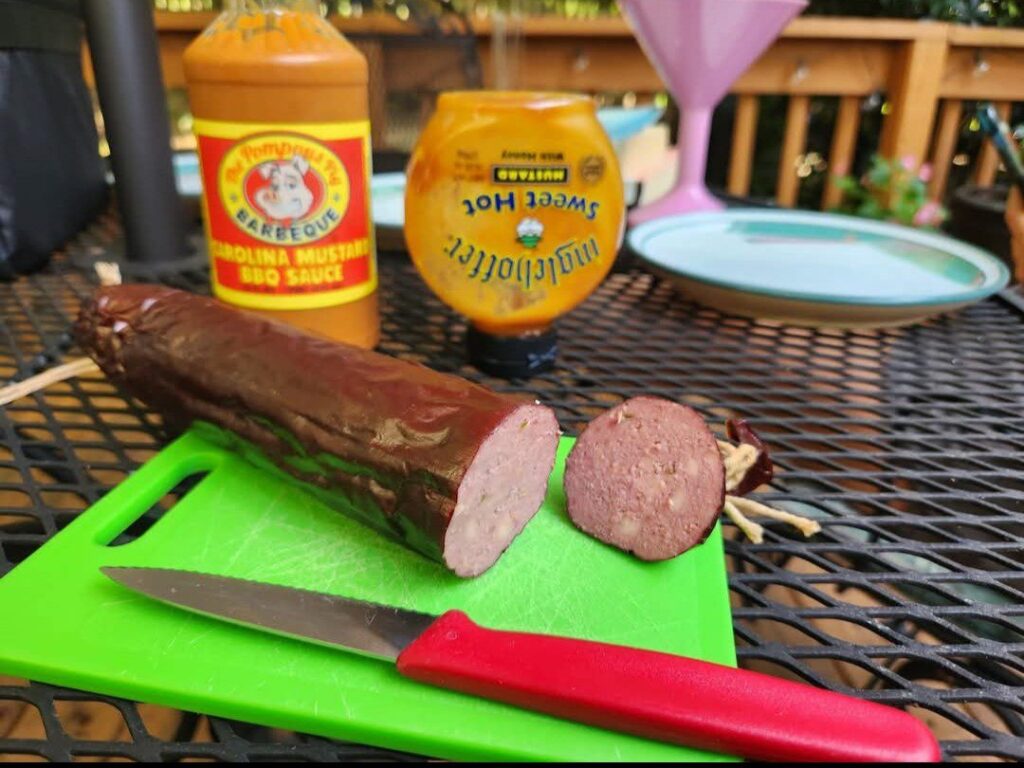 Serve the summer sausage and smoked cheese with gourmet crackers, which can usually be found in the deli section of your grocery store. We like to serve stone ground mustard or a spicy brown mustard with this gastronomic feast. A nice Kolsch beer or Weissbier is always a favorite with summer sausage. The hops, spices, and malt tend to go along with the saltiness and spiciness of the summer sausage. If you like wine, a nice Cabernet Sauvignon will work well with the summer sausage. The Cab has fruity flavors of dark currant, black cherry, wood, and tobacco that bring out the spicy, peppery, cheese flavors of the summer sausage.