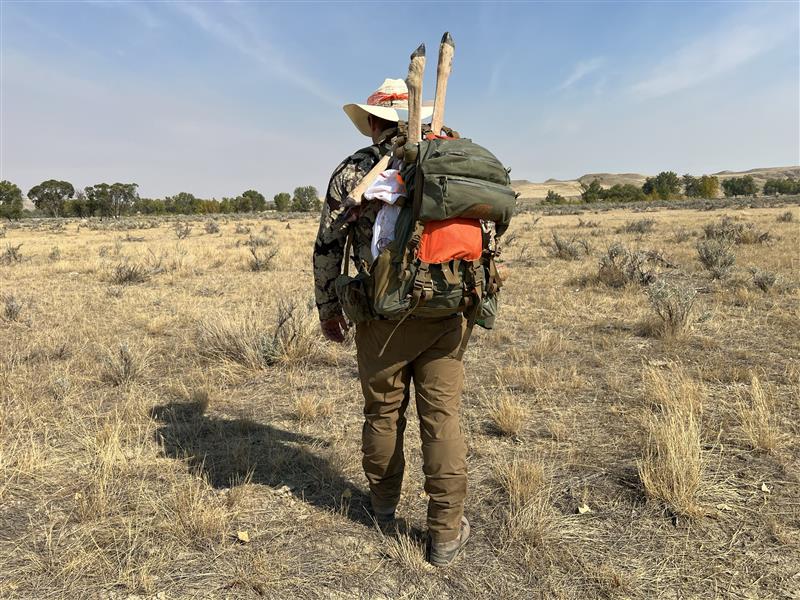For the great plains the Mystery Ranch pop-up 30 was the favorite. Certainly you do not need as much gear on the great plains as you do in the Alaskan mountains. But more than that the smaller mystery ranch pop-up has unique accommodations for glass. This pack can screw in a rifle rest, bino mounting or spotting scope right onto the frame. This made stopping to glass large sections much easier than breaking out a tripod and carrying that extra weight.