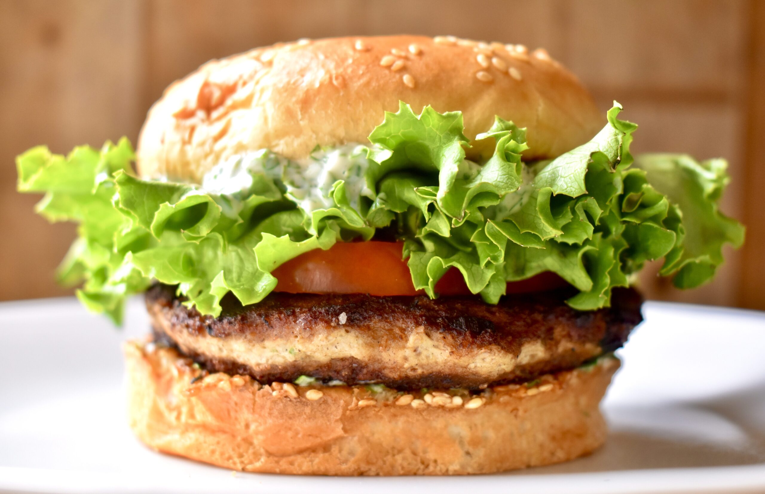 While the burgers rest, mix the herbs with the mayonnaise and spread onto both sides of the buns. Top with a turkey patty, tomato, and lettuce and serve immediately. Enjoy!