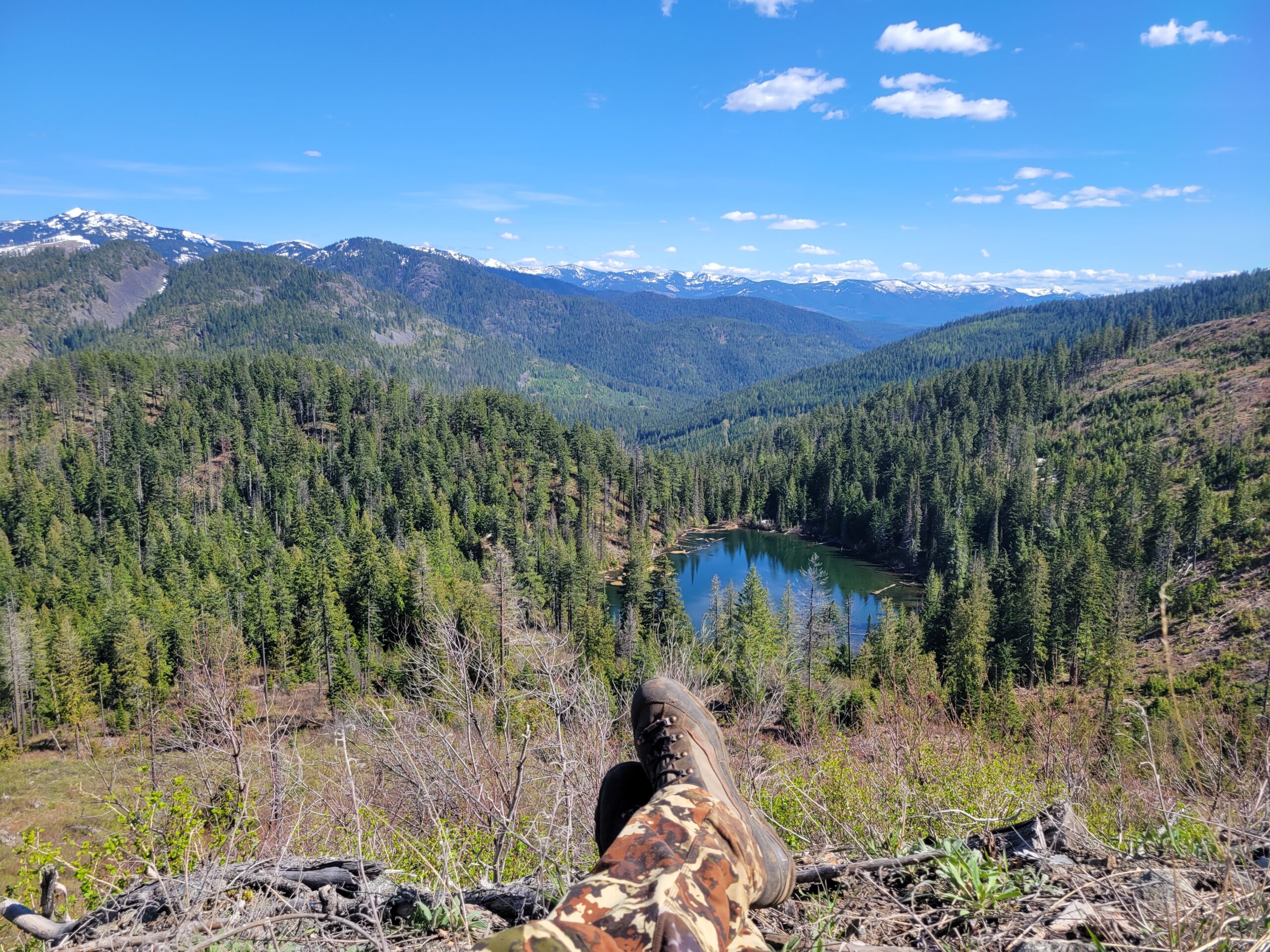 From where I stood, I could see for miles, overlooking lakes and distant snow capped mountains which served as a reminder that, despite the heat, winter wasn’t all that long ago. Not too surprisingly, I did not hear even a single distant gobble in response. It was just so dang hot!