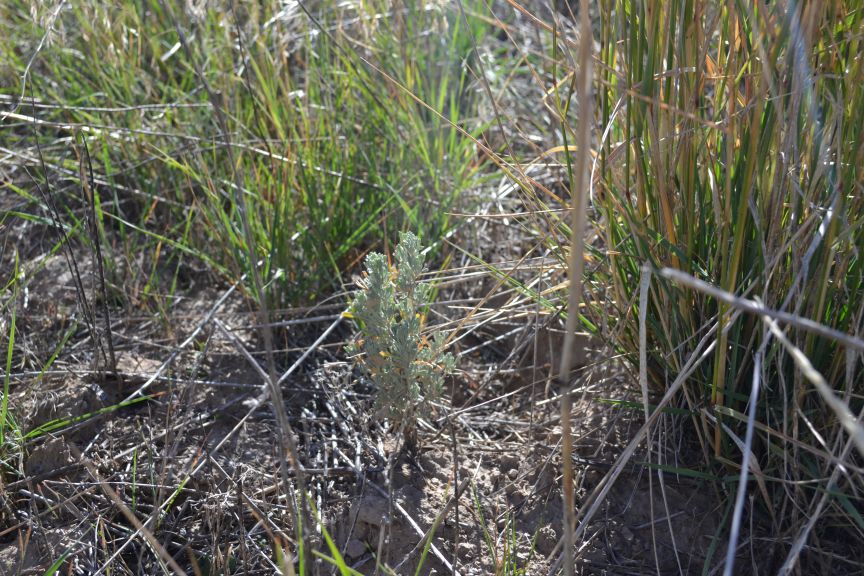 Freshly planted sagebrush seedling.