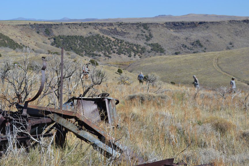 Charred sagebrush and the remnants of an attempt to farm the sage-steppe.