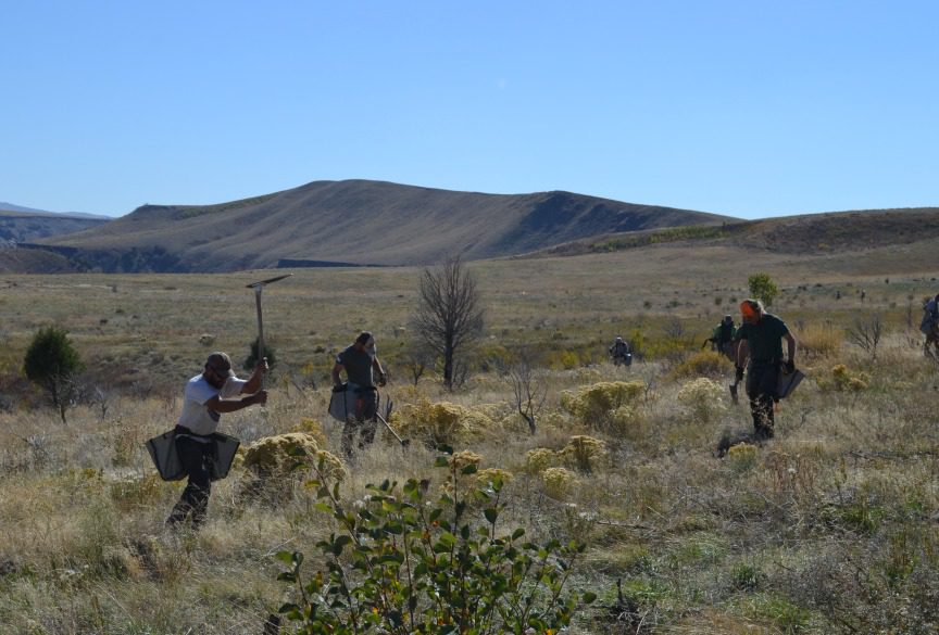 Fire-restoration specialists planting sagebrush.