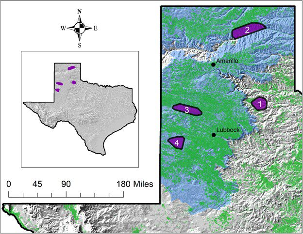 There are only a few instances where agriculturally dominated landscapes coincide with the mule deer geographic range, thus our knowledge of the influence agriculture has on mule deer is limited and drives the desire for research. Many landowners throughout the Texas Panhandle observe sometimes hundreds of mule deer congregating in agricultural fields, however, some landowners did not observe this many deer other times of the year. This led to questions such as: