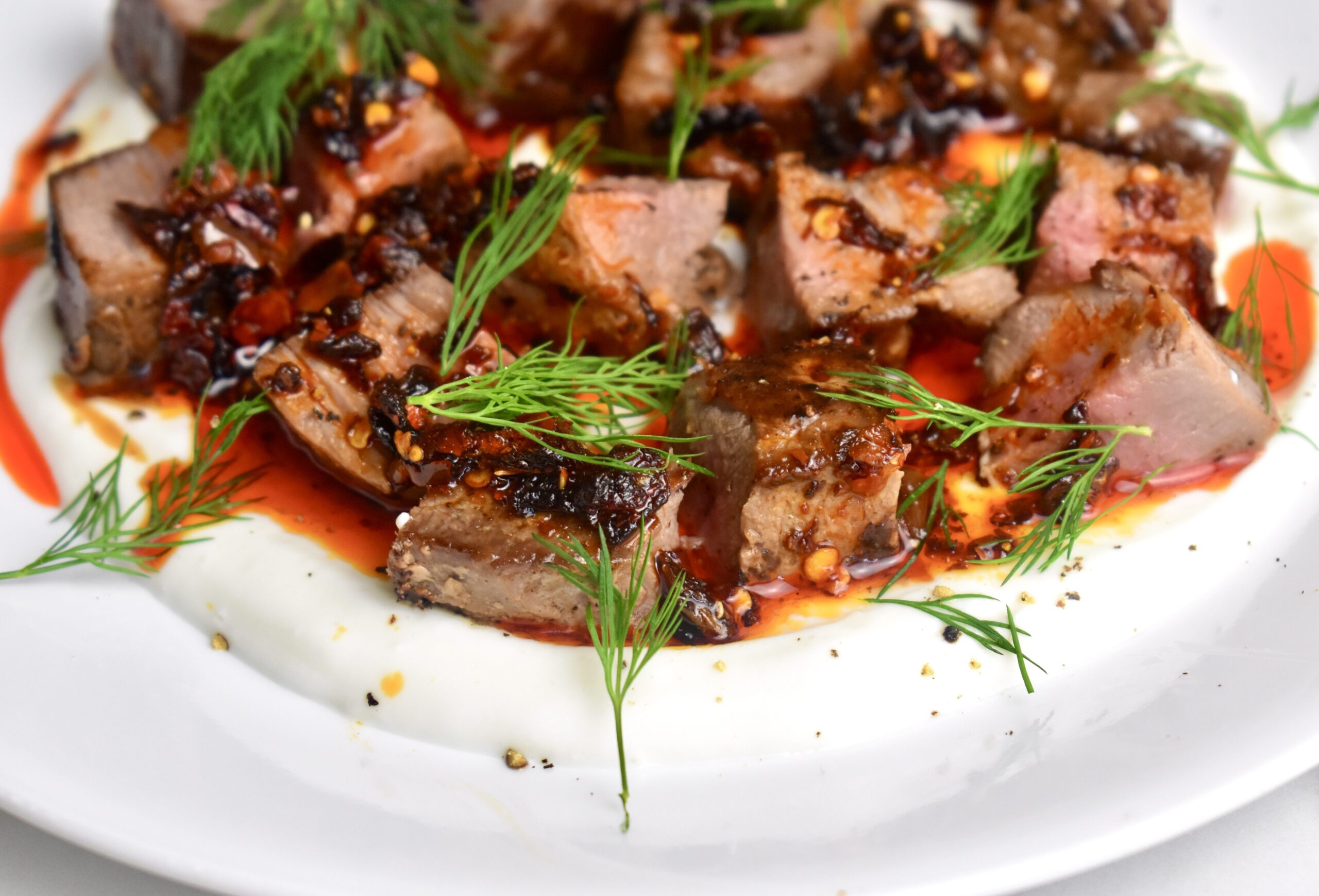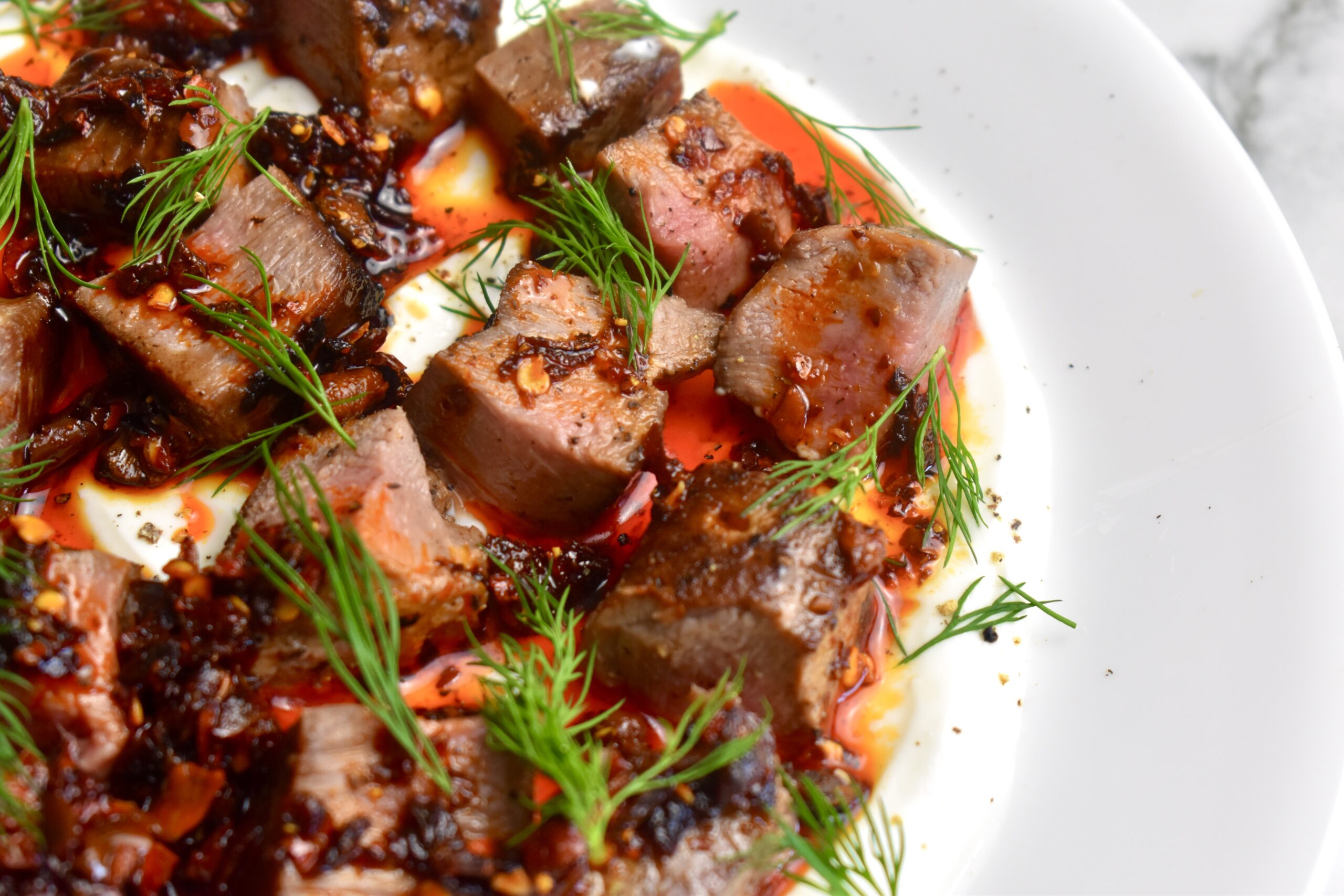 Venison Steak Salad with Yogurt, Chili Crisp, and Dill
