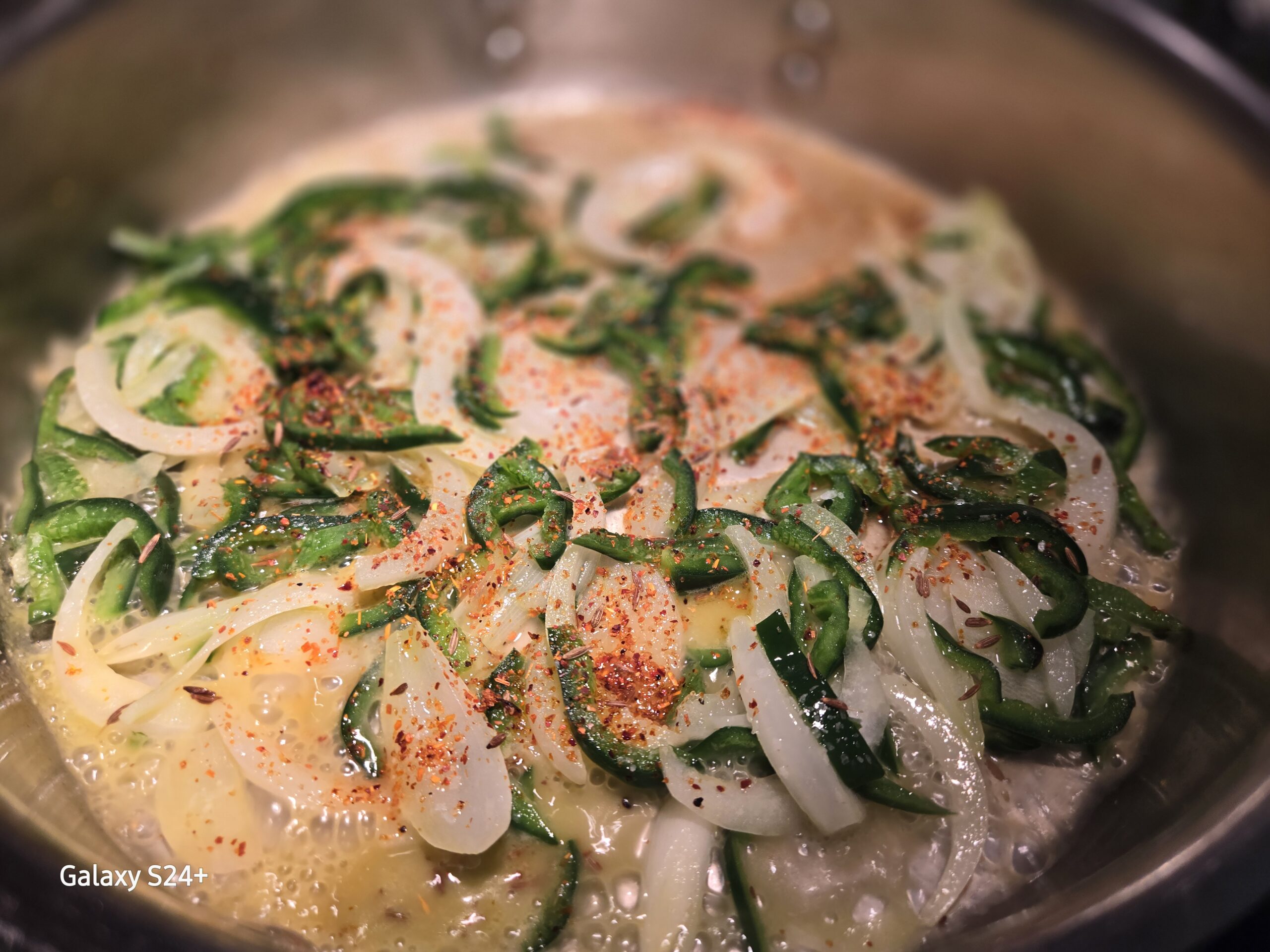 3. Once melted add annatto seed and stir for 1 minute. Add corn, onion, poblano and chipotle powder. Stir, and allow to sauté, gently over medium to low heat for 3-5 minutes or until the pepper and onion have softened.
